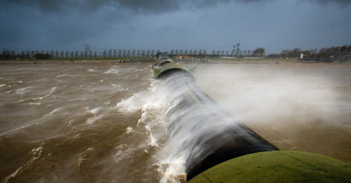 - sluit bij een waterpeil van NAP +0.50 meter, sterke noordwestenwind en stroming landinwaarts